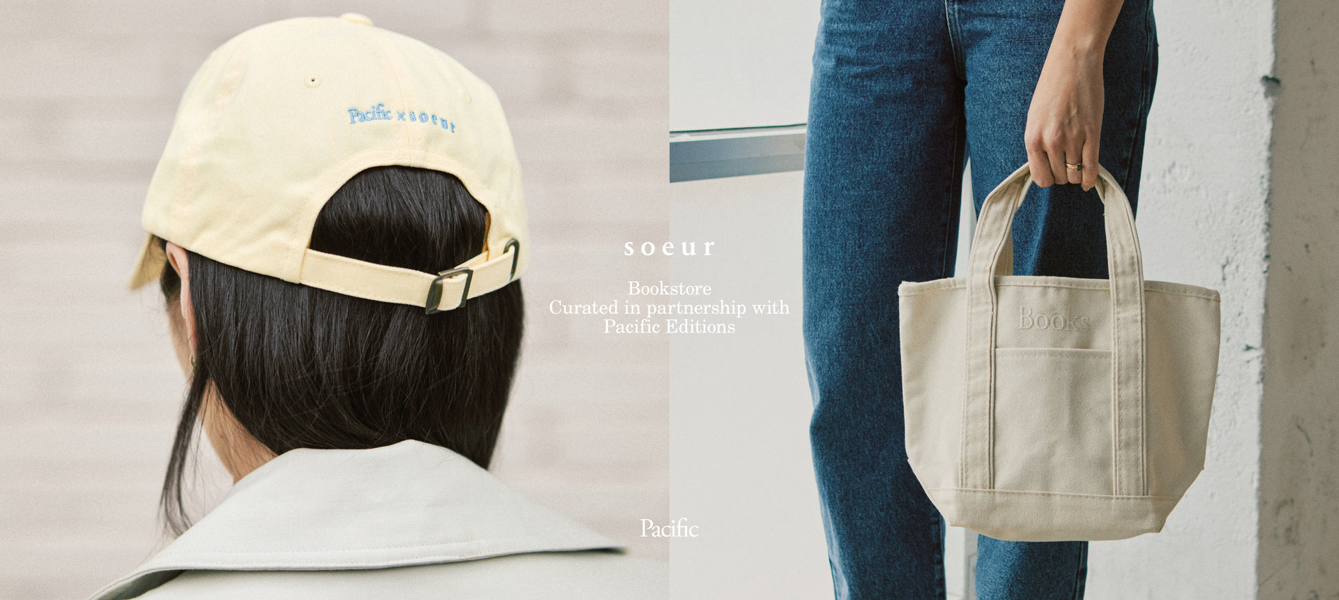 Una serie de bolsos de lona y gorras bordadas con la palabra "Books" en colores exclusivos.