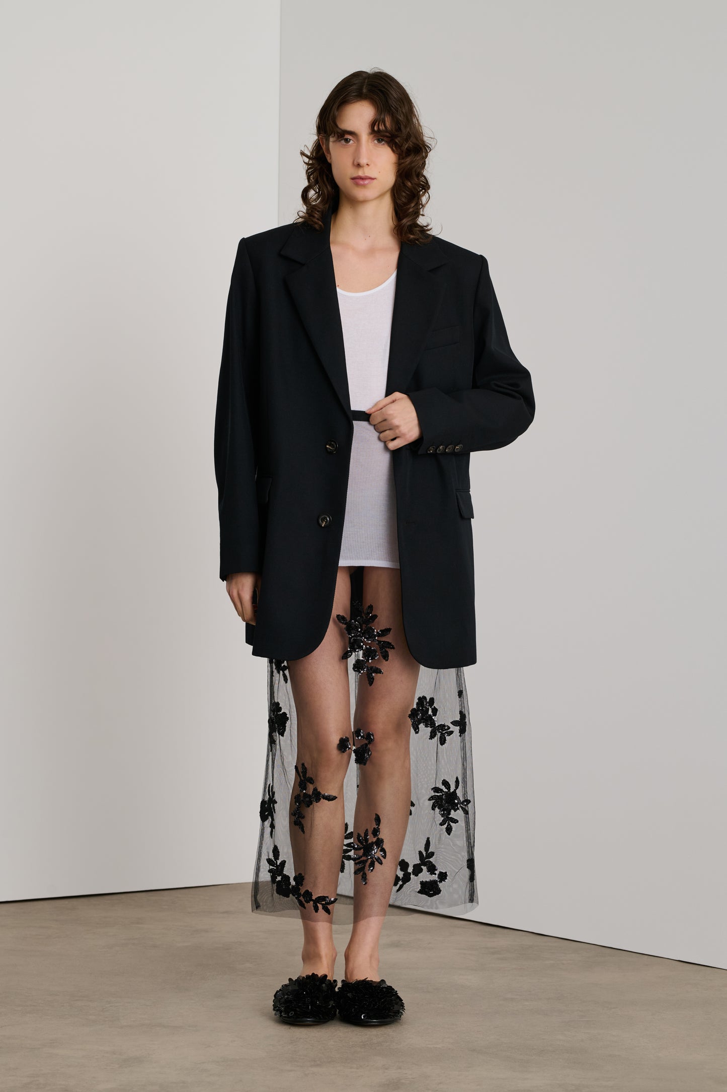 Mocasines de piel negra y lentejuelas bordadas