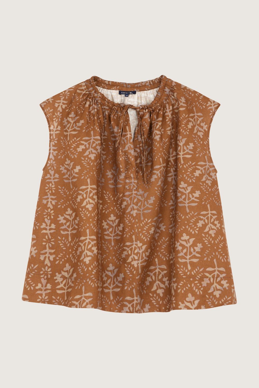 Blusa de lino flameado estampado marrón/parma estampado dune
