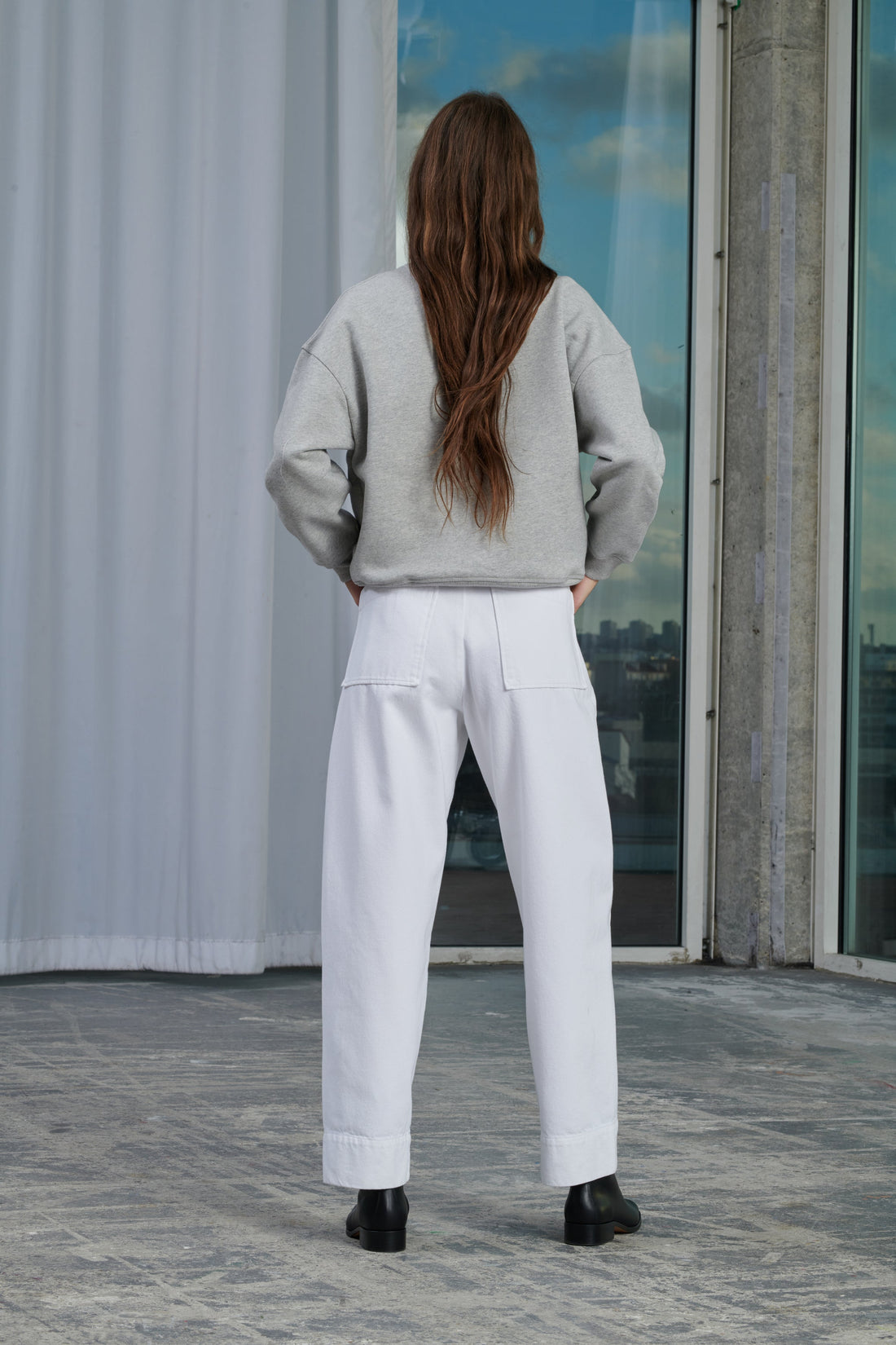 Pantalón de cintura alta con cinturón de tejido vaquero blanco blanco