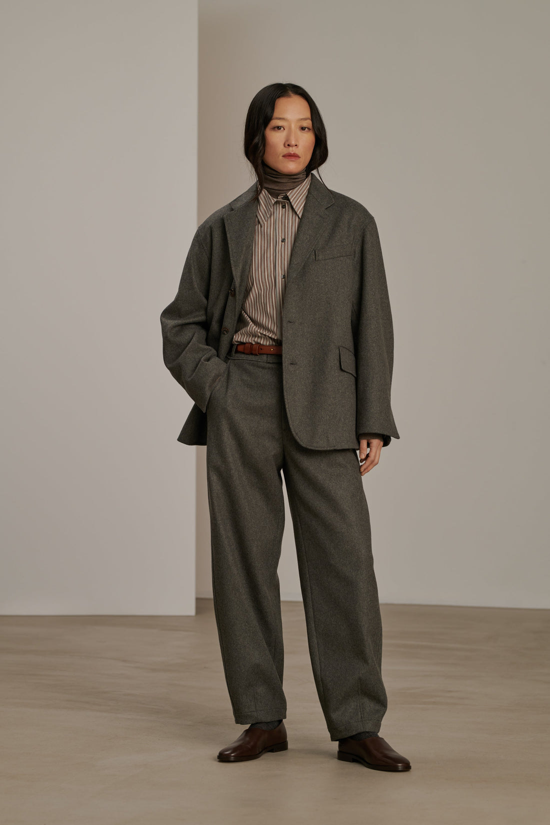 BARRIE es un pantalón de lana, con un corte amplio. Gracias a una pierna delicadamente redondeada y un pliegue marcado en el bajo, crea una silueta sofisticada. Hecho de lana cálida, gruesa y suave, es ideal para el pleno invierno.