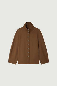 FREJUS es un pantalón de pinzas en sarga de algodón caqui-bronce. Cintura entallada, corte acampanado, cintura trasera elástica para comodidad.
