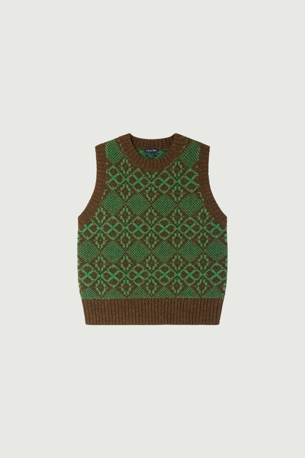 NAMASTE es un jersey sin mangas de alpaca y lana, un auténtico icono de nuestras colecciones. Su corte recto y cuello redondo ofrecen un look depurado. Perfecto para dar calidez a un conjunto combinado con una camisa o una camiseta, se consagra como un clásico renovado. Este invierno se presenta en un jacquard marrón y verde de inspiración inglesa.