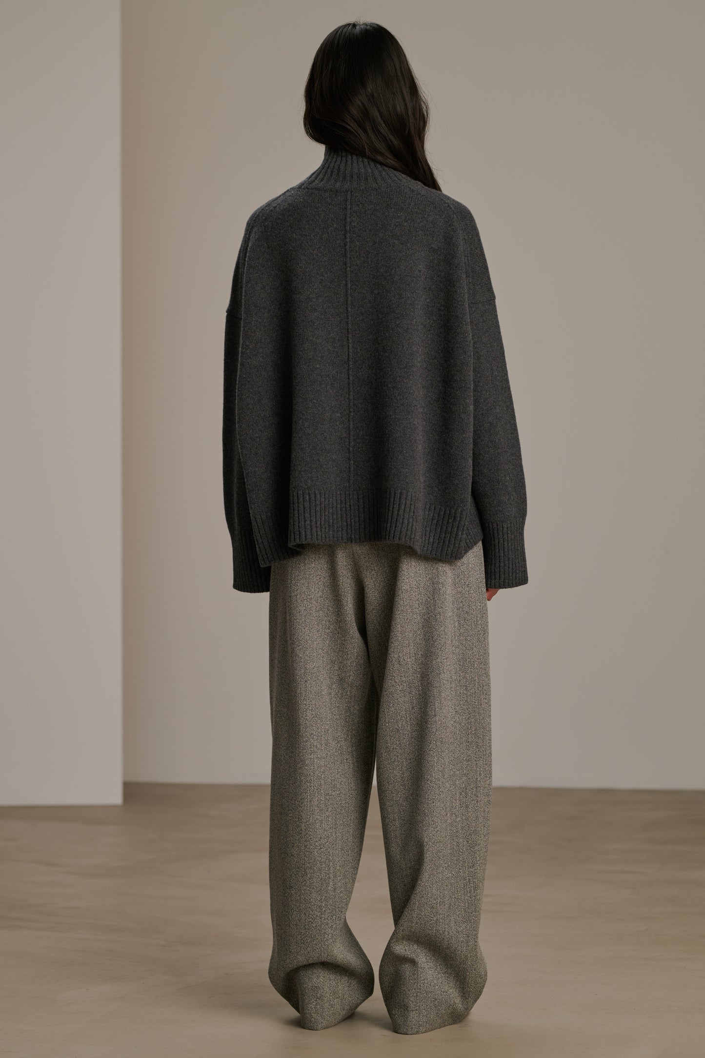 Jersey de cuello vuelto oversize en lana gris oscuro