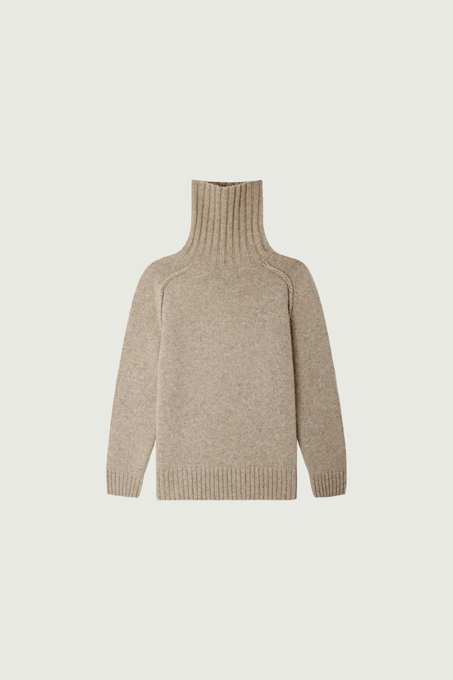 WINDY es un jersey de cuello alto en lana mezclada. Las costuras vueltas destacan la sisa martillo. Su cuello de canalé ha sido intencionadamente alargado para darle un aire singular. Posibilidad de enrollar o doblar el cuello según se desee. Su volumen corto y ajustado al cuerpo permitirá meterlo fácilmente en un pantalón.