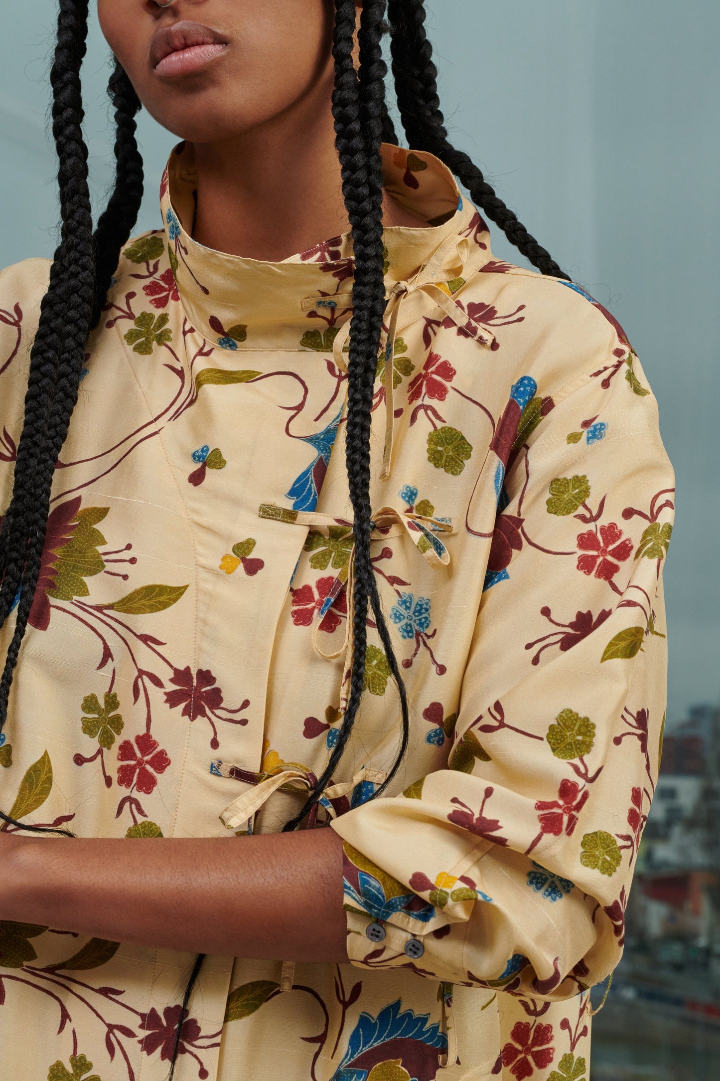 - Manga larga ancha con sistema de botones en los puños