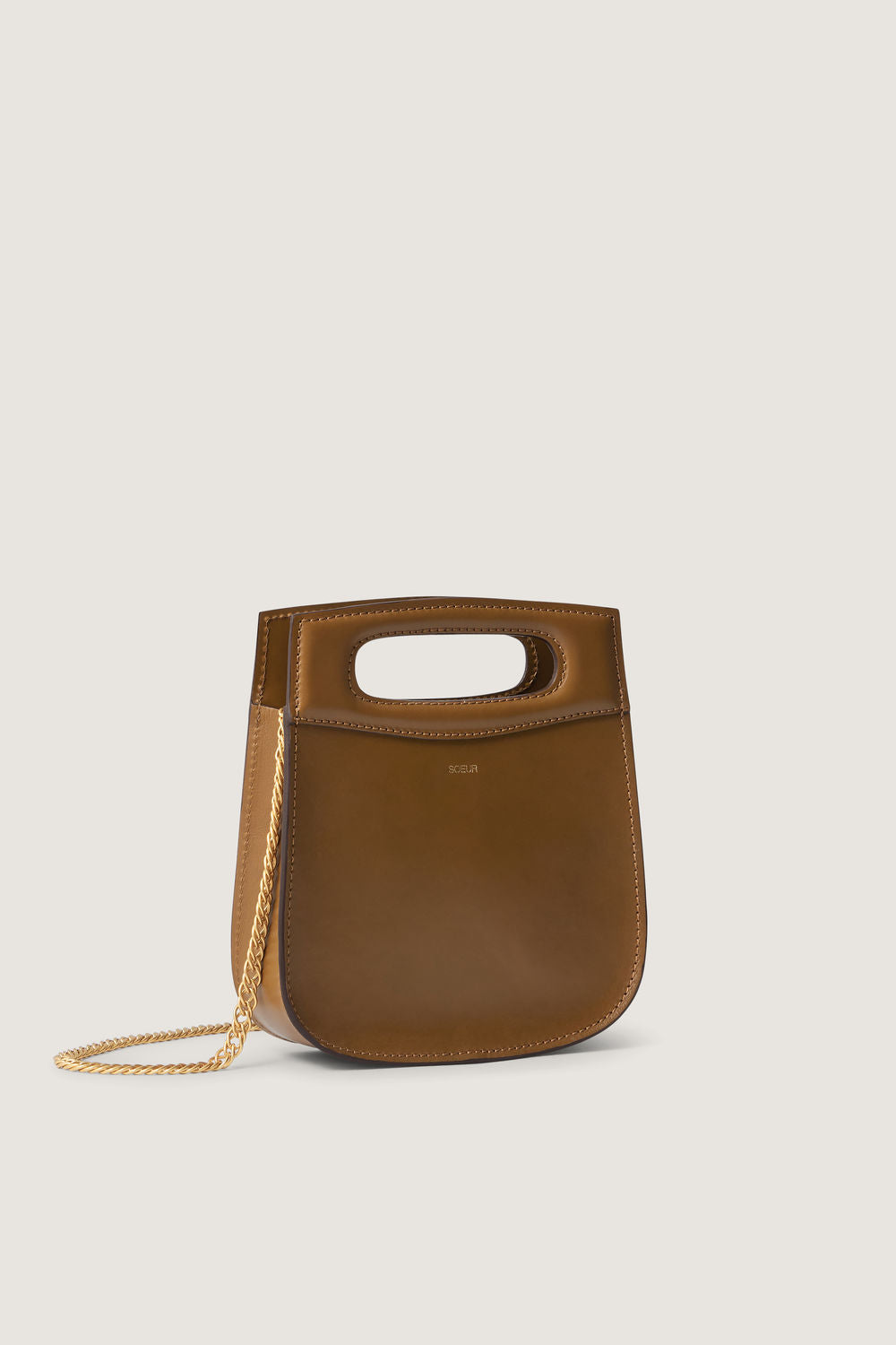 CHERI MINI es la versión en miniatura de uno de nuestros icónicos bolsos, reconocible por su asa ovalada moldeada. Puede llevarse tanto en la mano como al hombro, gracias a su delicada cadena dorada. Es el complemento perfecto para un atuendo elegante. También resulta sumamente práctico para el día a día, cuando solo necesitas llevar lo imprescindible.