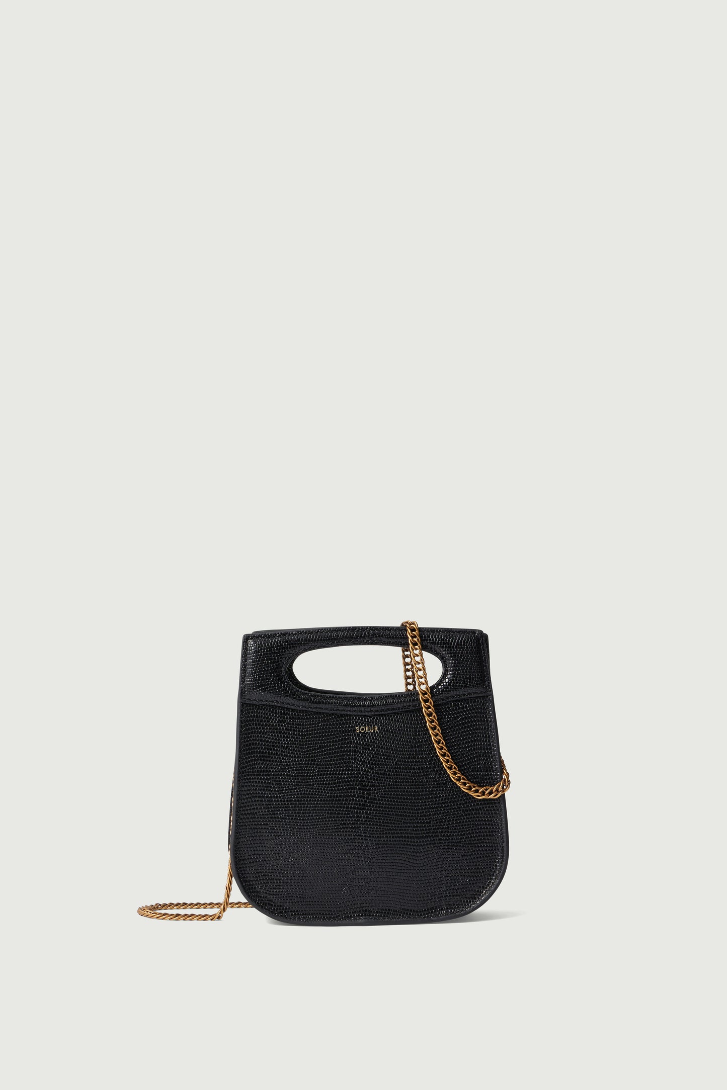 CHERI MINI es una versión en miniatura de uno de nuestros bolsos icónicos, reconocible por su asa ovalada moldeada. Puede llevarse en la mano o colgado del hombro gracias a su fina cadena dorada. Es el toque final perfecto para cualquier conjunto elegante. También es práctico para el día a día, para llevar lo imprescindible.