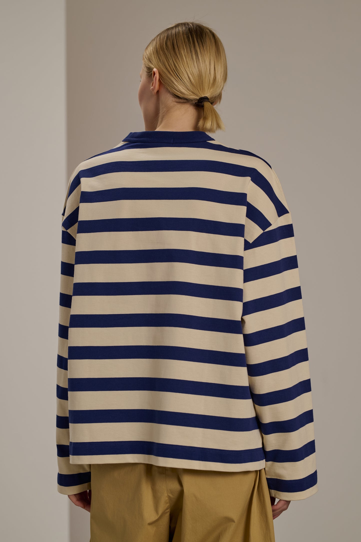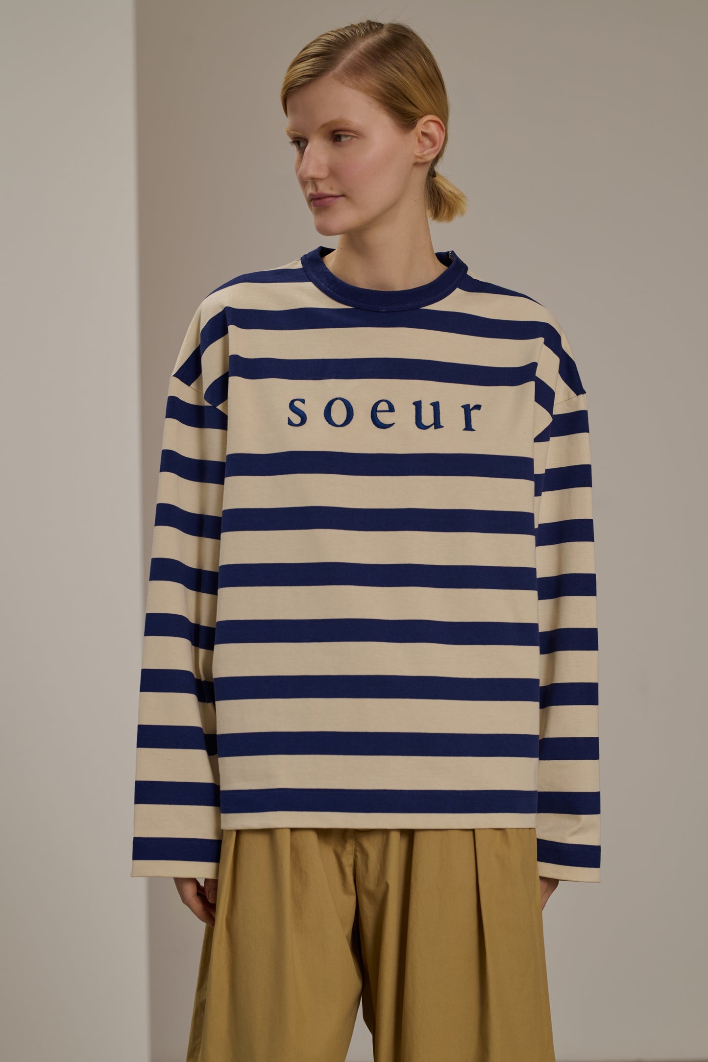 Camiseta marinera de manga larga con logotipo «Sœur» bordado en algodón crudo y azul marino